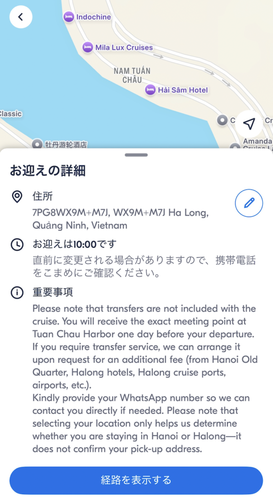 =クルーズには送迎は含まれていません。 Tuan Chu Marinaから出発します